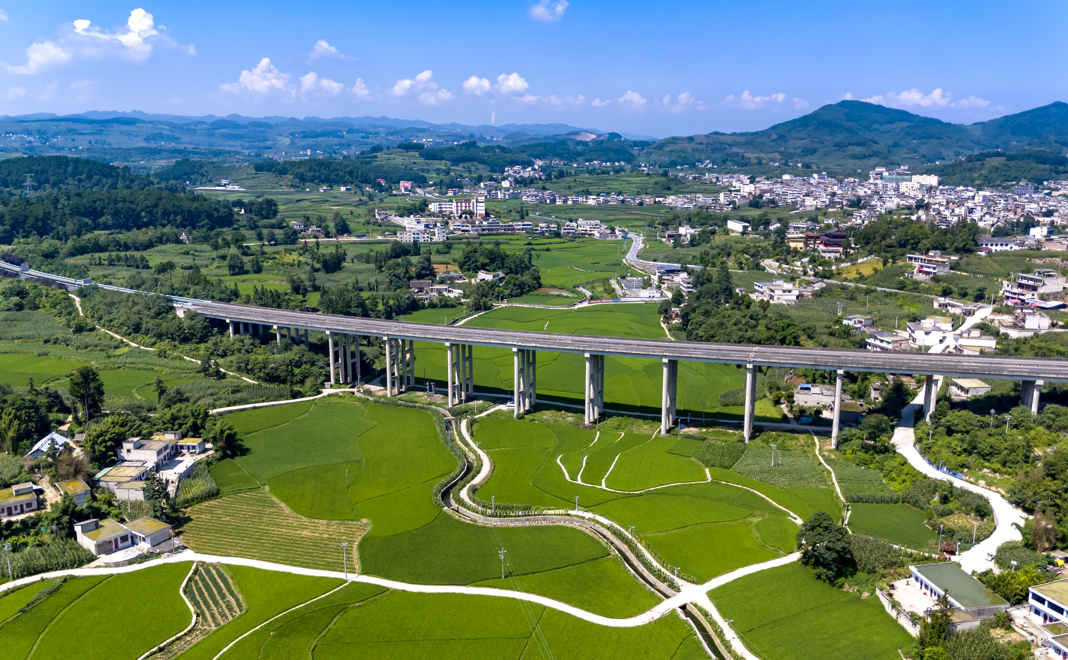 10月8日,國慶中秋假期的最后一天,貴州省貴黔高速公路鴨池河大橋迎來返程車流高峰,大橋上的車流與河流、峽谷交相輝映,壯美如畫。