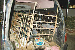 彰化縣疑似販嬰的林姓夫妻,五月間,曾將三名小孩裝在豬籠中,開著貨車趴趴走,被警方帶回。圖片來源:臺灣《聯(lián)合報》