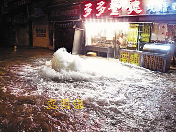 在中西區(qū)的金融商業(yè)心臟地帶,滿布數(shù)十年前鋪設(shè)的舊水管,其中金鐘道的地底水管曾于2004年爆裂,已令金鐘道西行線全線封閉。灣仔堅(jiān)拿道西地下一條飲用水管,18日疑因使用逾30年水管老化爆裂,一段堅(jiān)拿道西被迫封閉,飲用水供應(yīng)雖未有中斷,但突如其來的洪水,使附近商戶的生意大受影響,途經(jīng)的車輛和行人也要涉水而行。