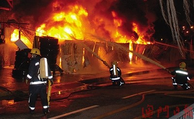 中新網(wǎng)3月10日電 《澳門日?qǐng)?bào)》今日在頭條刊發(fā)報(bào)道稱,澳門縱火案頻生,氹仔奧林匹克大馬路一露天廢舊輪胎回收?qǐng)?日清晨疑被人縱火,存放場(chǎng)內(nèi)近百條輪胎著火焚燒,火勢(shì)猛烈。燒輪胎產(chǎn)生的有毒黑煙席卷半空,火舌亂竄,煙團(tuán)滾滾,遠(yuǎn)至路氹城連貫公路也可看見,狀甚嚇人。