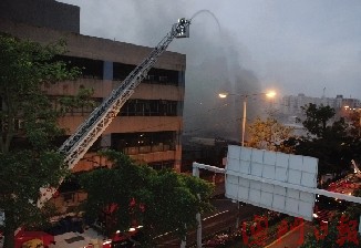 因有大批輪胎焚燒,十多名消防煙帽隊(duì)員拖喉向火場(chǎng)的正面射水,并用鐵筆撬開回收?qǐng)鐾獾匿\鐵板及鐵絲網(wǎng),方便灌救。消防員除在地面救火外,更升起一輛云梯車的云梯,并利用一輛大型泡沫及干粉車、消防車,從高處和左右兩側(cè)向火場(chǎng)噴灑化學(xué)泡沫及射水,阻止火勢(shì)蔓延。