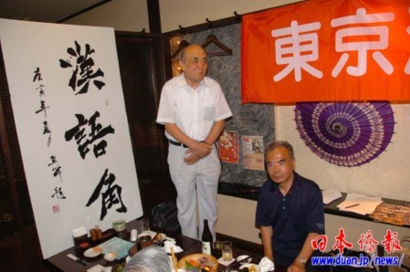 交流會(huì)上展示了旅日華人書法家熊峰和日本書法家冢越誠(chéng)分別題寫的“漢語(yǔ)角”,受到大家的好評(píng)。
