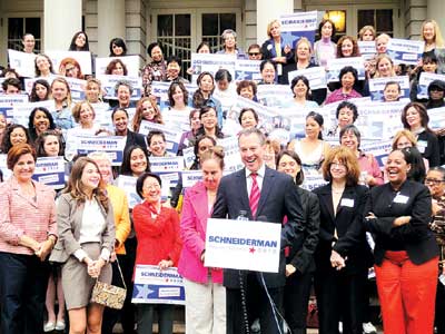 12日下午逾百位各族裔婦女代表云集市府為史樹德造勢,除了市議長柯魁英(Christine C. Quinn)與多位女性政客到來,華埠市議員陳倩雯、還有美東聯(lián)成公所的十多位婦女會(huì)員們均站臺(tái)。她們力挺史樹德,并解釋為何沒有支持同是女性的韋嘉蓮。