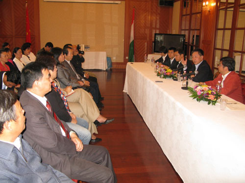 中國駐匈牙利大使館臨時代辦梁才德、領(lǐng)事部主任楊大亮和匈牙利華人華僑社團聯(lián)合總會、匈牙利中國和平統(tǒng)一促進會等當(dāng)?shù)厝A人社團和華商代表出席座談會。(李震)