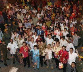 中新網(wǎng)9月18日電 據(jù)馬來(lái)西亞《星洲日?qǐng)?bào)》報(bào)道,由馬來(lái)西亞旅游部主辦、逾百個(gè)華團(tuán)及非政府組織聯(lián)辦的“一個(gè)馬來(lái)西亞華團(tuán)慶中秋晚會(huì)”,吸引超過(guò)2萬(wàn)名民眾共襄盛舉,三大種族人民齊聚吉隆坡中央藝術(shù)坊歡慶中秋節(jié)將“一個(gè)馬來(lái)西亞”精神發(fā)揮得淋漓盡致。