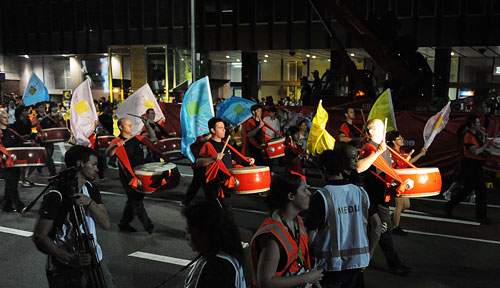 中新網(wǎng)2月23日電 當(dāng)?shù)貢r(shí)間2月21日晚,華燈初上,澳大利亞悉尼市中心一片歡騰。這是悉尼為慶祝中國(guó)春節(jié)而舉辦的全球最大新年花車(chē)大巡游。巡游隊(duì)伍中“文化中國(guó)•四海同春”紅鼓彩旗方隊(duì)大放異彩。