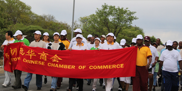 博茨瓦納警察總署署長齊馬科、中國駐博茨瓦納使館參贊茍皓東、領(lǐng)事郭斌、佛朗西斯敦警署、佛市華人華僑和印巴商人等約200人參加了游行。游行過程中,當?shù)孛癖、印巴裔人紛紛加入游行隊伍?