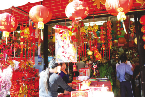 虎年的腳步聲近了,中國(guó)城的大小商家鉚足了勁,準(zhǔn)備來個(gè)“開門紅”,以虎為圖案的宣傳招牌到處可以看見。走在中國(guó)城的街道上,最能夠吸引大家眼球的是迎新春的“中國(guó)紅”的各種飾物。“虎年招財(cái)”掛件,紅燈籠,紅春聯(lián),紅色的吉祥物、招財(cái)進(jìn)寶的童子,健康長(zhǎng)壽的壽星,顏色全部以紅色為基調(diào),讓整條百老匯大街喜氣洋洋。店員珍妮告訴記者,前來詢問“虎年商品”的華人、“洋人”都很多,他們都很懂中國(guó)新年,知道挑選與生肖有關(guān)的小商品。她說,不少學(xué)校的老師,也前來購(gòu)買一些“虎年紅包袋”及可愛小老虎的飾件;這些東西老師都將用于課堂,讓學(xué)生了解中國(guó)人過年的民俗,他們還會(huì)給學(xué)生發(fā)“新年紅包”。