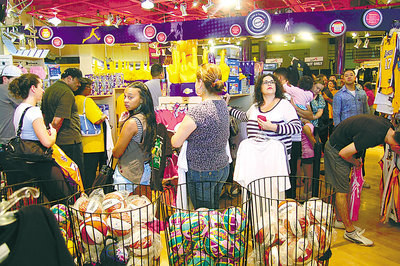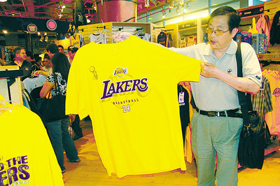 西裔諾加勒斯一家祖孫三代到湖人隊(duì)用品店選購(gòu)各自中意的服裝、鞋帽。他表示,一直是湖人隊(duì)忠實(shí)球迷,經(jīng)常購(gòu)買湖人隊(duì)紀(jì)念品,所有紀(jì)念品加起來(lái)可辦一個(gè)收藏展。