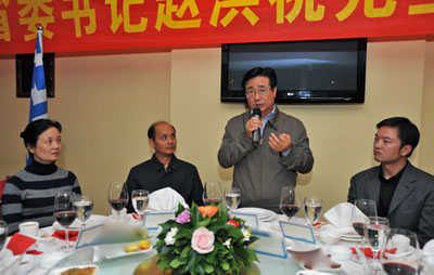 趙書(shū)記給浙江籍旅希僑胞帶來(lái)了浙江省委省政府和全省人民的親切問(wèn)候,稱(chēng)贊他們?cè)谥С直本⿰W運(yùn)會(huì)圣火在希臘取火傳遞、支援四川抗震救災(zāi)、為希臘森林火災(zāi)和困難兒童捐款捐物等行動(dòng)中,體現(xiàn)出僑民心系祖國(guó)發(fā)展、積極融入希臘、建設(shè)模范僑區(qū)的優(yōu)良精神風(fēng)貌。他和大家一起深情回顧了新中國(guó)建國(guó)60年、改革開(kāi)放30多年來(lái)取得的輝煌成就,對(duì)僑胞們?cè)谙ED艱苦創(chuàng)業(yè)十余年取得的豐碩成果表示祝賀。