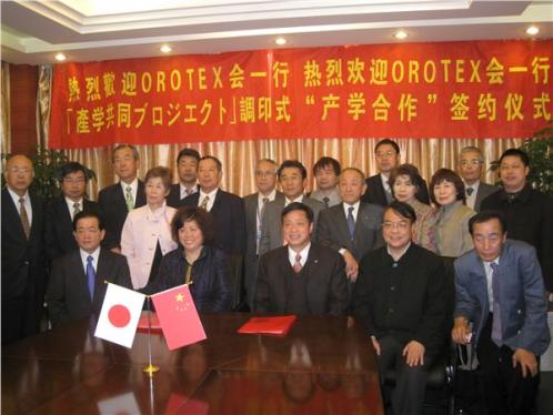 南京八重櫻有限公司董事長莊玉鳳、總經(jīng)理韓金龍,南京市海外交流協(xié)會會長顏健建,南京高等職業(yè)技術學校黨委書記吳仲華、副校長楊正民、李明庚等出席簽約儀式。日本OROTEX協(xié)會會長、飯?zhí)锂a(chǎn)業(yè)株式會社社長飯?zhí)锓己曷嗜毡綩ROTEX協(xié)會成員10余人也應邀參加了儀式。