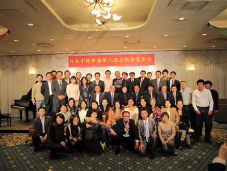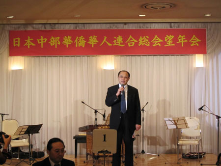 中新網(wǎng)12月16日電 據(jù)日本新華僑報(bào)網(wǎng)報(bào)道,12月13日,日本中部華僑華人聯(lián)合總會2009年度忘年會在三重縣合歡鄉(xiāng)酒店舉行。中部地區(qū)13個僑團(tuán)、3家中資企業(yè)及各界華僑華人代表80多人歡聚一堂,中國駐名古屋張立國總領(lǐng)事出席活動并講話。