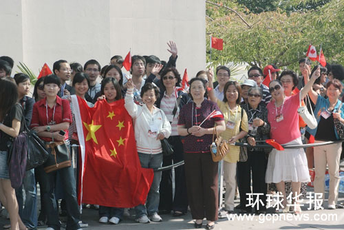 溫哥華老年華人協(xié)會創(chuàng)會會長李保忠對該報記者說,他是一清早就從高貴林的家中趕來酒店。“在中國慶祝建國六十周年前夕,我們迎來了祖國的親人,我覺得非常激動,令人難忘!崩畋V艺f,“祖國強大了,我們?nèi)A人在海外什么都不怕。”