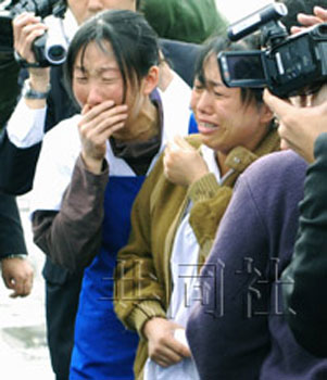 宋方的父親9日抵達(dá)森町認(rèn)領(lǐng)女兒尸體。靈柩車途經(jīng)宋方生前所在工廠時(shí),同事們淚流滿面前來送行。