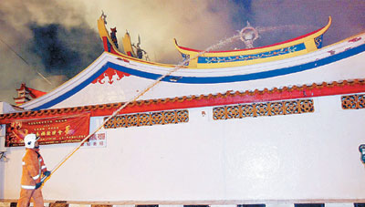 瓜登市民每年都依據(jù)傳統(tǒng)在大年初九到這所福建古廟拜天公,不過,這所廟卻在慶典后不及24小時的22日晚約9時30分發(fā)生火患。該廟中間殿堂率先冒煙,進而燃起雄雄烈火,并把廟內(nèi)多處燒毀。