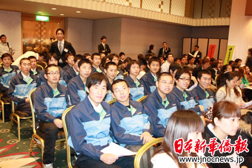 中新網5月2日電 據日本新華僑報網報道,5月2日,80多名中國研修生利用“黃金周”的休息時間來到日本東京雅敘園,在這里參加日本全國商務援助協(xié)同組合聯(lián)合會主辦的“第四屆全國外國人研修生講演大會”。