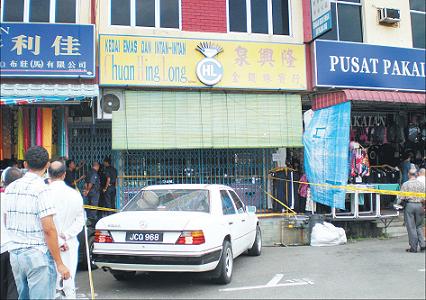 這起發(fā)生在新邦令金大街(即當(dāng)?shù)鼐旆志謱?duì)面)4層樓店鋪的命案,是18日下午2時(shí)左右被揭發(fā)。死者為泉興隆金鋪東主劉崇福(68歲)和其太太黃蓮英(62歲)。