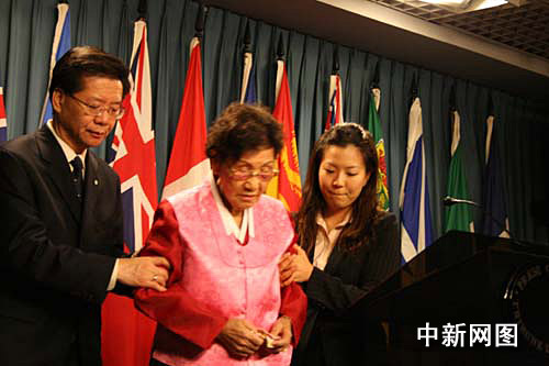 中新網(wǎng)渥太華11月27日電(韓瀟)來(lái)自中國(guó)、韓國(guó)、菲律賓和荷蘭的四名年逾八旬的“慰安婦”幸存者今天在渥太華國(guó)會(huì)山舉行聽(tīng)證會(huì),控訴日本政府在二戰(zhàn)中強(qiáng)迫婦女充當(dāng)“慰安婦”的罪行,并呼吁加拿大敦促日本承認(rèn)戰(zhàn)爭(zhēng)罪行,向“慰安婦”正式道歉和賠償。據(jù)悉,這是加拿大歷史上首次有二戰(zhàn)“慰安婦”在國(guó)會(huì)作證。