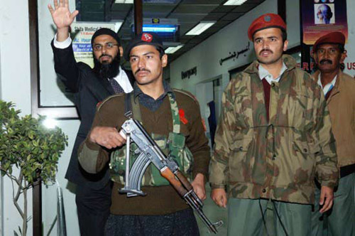 24日,在巴基斯坦首都伊斯蘭堡,軍警在收治受傷中國工程人員的醫(yī)院急診室外把守。新華網(wǎng) 李敬臣 攝