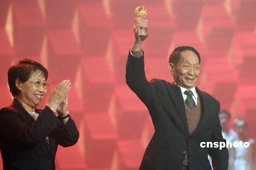 3月29日晚,“世界因你而美麗--2007影響世界華人盛典”頒獎典禮,在北京大學百周年紀念講堂舉行。在科學研究、公共事務、體育競技、文化藝術等領域,榮獲“2007影響世界華人大獎”的11位杰出華人揭曉!半s交水稻之父”袁隆平榮膺“2007影響世界華人終身成就獎”,全國人大常委會副委員長烏云其木格為其頒獎。中新社發(fā) 廖文靜 攝