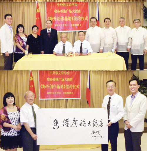 在何時(shí)敬和宿霧華社人士的共同見證下,中外散文詩(shī)學(xué)會(huì)與菲律賓宿霧香港廣場(chǎng)大酒店于19日晚,簽署了創(chuàng)設(shè)“中外散文詩(shī)學(xué)會(huì)海外創(chuàng)作基地”的協(xié)議。