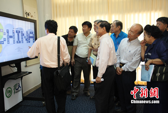 在孔子課堂“中國文化體驗中心”,幾名高年級的學生正在引導50多位來自泰國北部清萊、清邁、南邦等8個府13所學校的理事和漢語教師,參觀孔子課堂利用現代多媒體科技手段打造而成的中國文化體驗設備!翱,用手點這里就可以讓古箏發(fā)出聲音。”一名學生向記者展示著。用手指輕觸電子觸屏就能讓各色的“中華文化大餐”躍然于屏幕之上,中國傳統(tǒng)器樂展示、國粹京劇臉譜拍照和中國傳統(tǒng)剪紙體驗更是令參觀者們個個豎起大拇指,連連叫好。