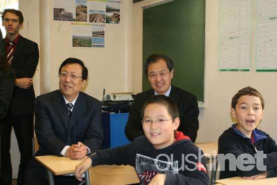 孔泉表示,中文國際班啟動(dòng)6個(gè)月來,已經(jīng)取得了很了不得的成績(jī),學(xué)生們的熱情很高,學(xué)習(xí)非常認(rèn)真。他說,“中國教育部對(duì)這個(gè)項(xiàng)目非常支持,漢辦也特地派來了漢語教師志愿者。所以此次我特地邀請(qǐng)教育部副部長郝平先生,來看看中法教育交流的合作和教學(xué)成果,以及兩國年輕人對(duì)相互了解的強(qiáng)烈愿望。我期待在中法雙方的努力下,通過這次的教學(xué)試點(diǎn),推動(dòng)法國中學(xué)都開設(shè)適當(dāng)水平的中文課程!