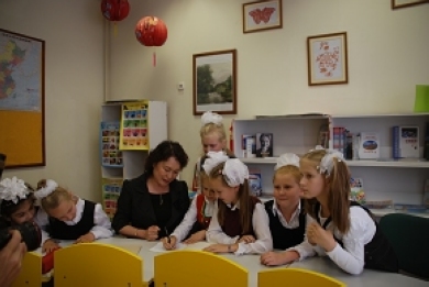 明斯克市蘇維埃區(qū)副區(qū)長(zhǎng)希帕伊也興致勃勃地拿過話筒,她說,白俄羅斯人民希望全面深入地了解中國(guó),學(xué)習(xí)中國(guó),白俄羅斯社會(huì)對(duì)漢語和中國(guó)文化的興趣空前增加。明斯克市教育部門決定大力推廣漢語教學(xué),第23中學(xué)有幸被白俄羅斯教育部選定為首批開設(shè)漢語教學(xué)的中小學(xué)之一,該校2006年9月開設(shè)漢語班以來,越來越多的學(xué)生對(duì)漢語感興趣,現(xiàn)有四個(gè)年級(jí)近80人在學(xué)習(xí)漢語。