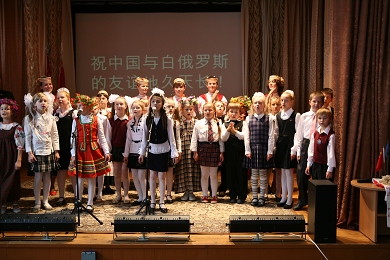 同學(xué)們質(zhì)樸而投入的表演深深打動(dòng)了每一位觀眾。大使夫人走上舞臺(tái),衷心感謝孩子們的精彩表演,特別感謝校方準(zhǔn)備的慶祝節(jié)目。她表示,看到白俄羅斯越來越多的孩子喜歡中國(guó)、學(xué)習(xí)漢語感到非常高興。中國(guó)使館愿與白俄羅斯朋友們一起,幫助更多的白俄羅斯青年人學(xué)習(xí)漢語,了解中國(guó)文化,幫助他們成為中白兩國(guó)人民交流的橋梁,為中白友誼的鞏固和不斷發(fā)展做出貢獻(xiàn)。