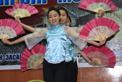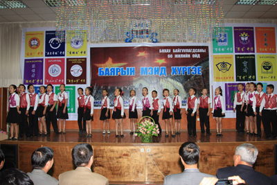 中新網(wǎng)9月27日電 據(jù)中國外交部網(wǎng)站消息,9月25日,為慶祝中華人民共和國成立60周年暨中蒙兩國建交60周年,蒙古首都教育局組織全市開設(shè)漢語教學(xué)課程的16所中小學(xué)校的師生,精心準(zhǔn)備了一場有歌唱、舞蹈、柔術(shù)、器樂表演等多個(gè)節(jié)目的精彩演出。中國駐蒙古使館參贊王?档热w館員、蒙古首都教育局局長恩赫巴雅爾及上述各校校長觀看了演出。
