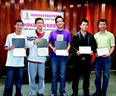 多倫多地區(qū)這次獲得獎(jiǎng)學(xué)金的考生共有七位,他們于2008年參加HSK考試成績(jī)優(yōu)異而獲獎(jiǎng)學(xué)金,并分別于2009年暑期前往北京語(yǔ)言大學(xué)、山東師范大學(xué)、北京語(yǔ)言文化大學(xué)、上海大學(xué)、華東師范大學(xué)、南京師范大學(xué)及黑龍江大學(xué),與來(lái)自五大洲的漢語(yǔ)學(xué)習(xí)者和愛(ài)好者一同學(xué)習(xí)漢語(yǔ)和了解中國(guó)文化,并到中國(guó)一些名勝古跡參觀(guān)旅游。