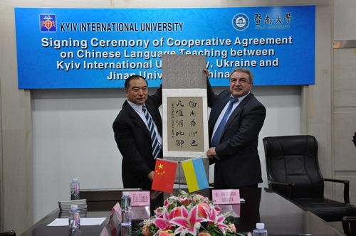 受校長胡軍的委托,暨南大學(xué)副校長賈益民于9月29日下午代表學(xué)校與烏克蘭基輔國際大學(xué)校長哈恰圖良簽署了兩校漢語教學(xué)合作協(xié)議書。在簽字儀式上,賈益民向來賓介紹了暨大的辦學(xué)情況,并講解了該校在辦學(xué)過程中形成的一整套,從教學(xué)、科研、教材編寫到海外教育項目開發(fā)的對外漢語教學(xué)辦學(xué)體系,暨南大學(xué)很樂意以優(yōu)質(zhì)的教學(xué)資源為有需要的國家提供漢語教學(xué)支持。哈恰圖良對暨大的熱情接待表示感謝,他盛贊中國是一個具有悠久歷史和文化傳統(tǒng)的偉大國家,漢語熱在世界范圍內(nèi)的興起就是最好的佐證。目前烏克蘭對漢語的需求很旺盛,學(xué)習(xí)漢語的人也越來越多,希望暨南大學(xué)在教學(xué)、師資等方面給予支持,全力推動烏克蘭的漢語教學(xué)工作。雙方簽署正式協(xié)議后將在建立漢語教學(xué)點、聯(lián)合培養(yǎng)研究生、互相協(xié)助招生等方面開展實質(zhì)性合作。