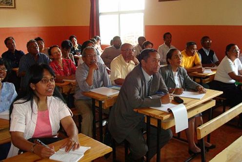 中新網(wǎng)10月28日電 據(jù)國家漢辦網(wǎng)站消息,10月23日下午,馬達(dá)加斯加塔那那利佛大學(xué)孔子學(xué)院201教室座無虛席。來自塔那那利佛大學(xué)各學(xué)院的40余名教師,滿懷著對(duì)漢語和中國文化的學(xué)習(xí)熱情,開始了他們的第一堂漢語課。他們中有學(xué)院院長、教授、博士生導(dǎo)師,也有剛剛走上工作崗位的年輕教師。