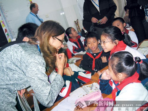 “這是南寧最好的學校嗎?”見學生的英語如此順溜,代表團成員莫雅(音譯)好奇地詢問道。“他們的英語太棒了!蹦耪f,這里一二年級的學生,居然能用英語和她進行基本對話,令她感覺很意外。