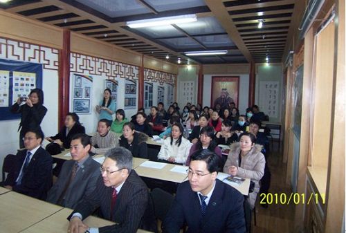 隨著蒙古國漢語教學(xué)的蓬勃發(fā)展,對本土漢語教師提出了更高要求。山東大學(xué)作為支持蒙古漢語教學(xué)的重點院校,在對蒙漢語師資培訓(xùn)及教材建設(shè)等方面積累了豐富的經(jīng)驗,形成了一套針對性強、科學(xué)合理的培訓(xùn)方法。受國家漢辦委派,山東大學(xué)國際教育學(xué)院黃歷鴻副院長和黑琨副教授專程赴蒙承擔(dān)此次師資培訓(xùn)任務(wù),根據(jù)蒙古國漢語教師的實際需要,開設(shè)了“漢語閱讀教學(xué)”、“漢語口語教學(xué)”、“漢語寫作教學(xué)”、“漢語聽力教學(xué)”及“中國文化講座”等課程。授課主要采用案例分析、教學(xué)錄像觀摩、課堂討論和課堂設(shè)計相結(jié)合的方式進行,以達到提高本土漢語教師綜合執(zhí)教水平的目的。