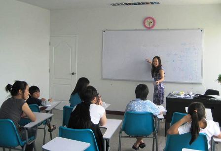 針對泰國學生的學習特點,分院開設了初級漢語、漢字、中級漢語、中級閱讀、視聽說等課程,并按照學生的漢語水平、年齡和上課時間,分為8個漢語班,目前共計32名學生在分院學習漢語。兩位外派教師的課堂教學以聽說訓練為主,同時強化漢語閱讀和漢字書寫能力,并加入了成語故事、古典詩詞欣賞等中國文化方面的內(nèi)容,豐富了課堂教學,增強了學生學習漢語的積極性,取得了很好的效果,教學反映良好。