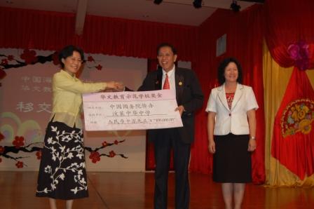 中新網(wǎng)2月8日電 2月6日,中國駐文萊大使佟曉玲在出席文萊中華中學(xué)舉辦的“虎臥華堂耀春輝”揮春比賽頒獎典禮時,代表中國海外交流協(xié)會向該校轉(zhuǎn)交了10萬元人民幣辦學(xué)經(jīng)費。