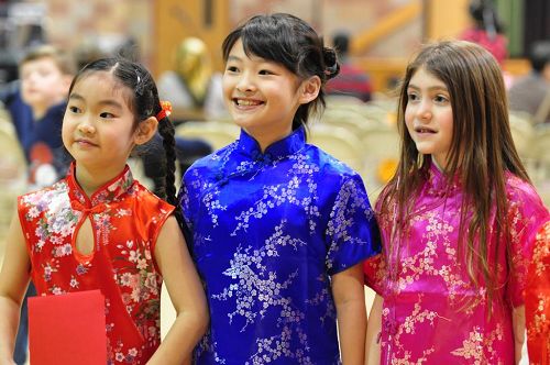 當(dāng)天,金發(fā)兒童也和中國孩子一起穿上了中國旗袍,學(xué)校校長Ms.Ventola,教會主任牧師Father Sean和300多嘉賓一起參加了歡慶活動。