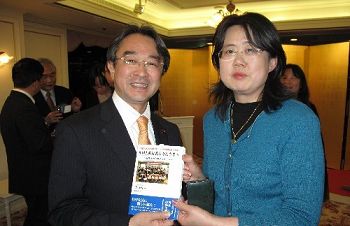 3月25日晚,日本眾議院議員、日中友好議員聯(lián)盟干事長(zhǎng)近藤昭一在東京親切會(huì)見了日本僑報(bào)社社長(zhǎng)張景子。張景子向近藤昭一介紹了有關(guān)中日作文大賽、特別是將于30日舉行的第五屆日本人漢語作文大賽頒獎(jiǎng)式的情況,并向他贈(zèng)送了剛剛出版的獲獎(jiǎng)作品集《致中國(guó)旅行者--日本人的心聲》。近藤昭一勉勵(lì)日本僑報(bào)社繼續(xù)努力,為推動(dòng)中日進(jìn)一步友好作出更大的貢獻(xiàn)。圖為張景子向近藤昭一贈(zèng)送《致中國(guó)旅行者》。 中新社發(fā) 段躍中 攝