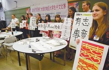 中新網(wǎng)4月6日電 據(jù)美國《世界日報(bào)》報(bào)道,美國大紐約地區(qū)“漢語橋”大學(xué)生中文比賽4月3日分別在紐約大學(xué)和俄亥俄州立大學(xué)舉行初賽,80多名美國學(xué)生參加了初級組和高級組比賽。