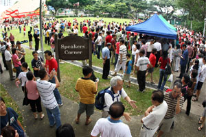 中新網(wǎng)5月11日電 據(jù)新加坡《聯(lián)合早報(bào)》報(bào)道,5月9日,數(shù)千名新加坡公眾在慶祝母親節(jié)之際,采取行動(dòng)對(duì)母語(yǔ)表達(dá)了一份深切關(guān)懷。他們?cè)谂e家外出用餐時(shí),首先前往芳林公園演說(shuō)者角落,以簽名方式表達(dá)了對(duì)母語(yǔ)的一份熱愛(ài)。前后兩個(gè)小時(shí)的活動(dòng),收集了至少2400個(gè)簽名。