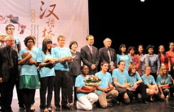 孔泉向所有積極參與“漢語橋”比賽的法國(guó)學(xué)生、向法國(guó)漢語總督學(xué)白樂桑等長(zhǎng)期致力于法國(guó)漢語教學(xué)推廣工作的評(píng)委會(huì)專家們、向承辦比賽的巴黎第十大學(xué)表示感謝,并向從中國(guó)國(guó)內(nèi)遠(yuǎn)道而來、專門對(duì)比賽進(jìn)行現(xiàn)場(chǎng)報(bào)道的湖南衛(wèi)視攝制組致意,相信他們的報(bào)道將使更多中國(guó)公眾了解“漢語橋”比賽、一睹法國(guó)選手的風(fēng)采,也期待法國(guó)選手在中國(guó)舉行的決賽中取得更好成績(jī)。