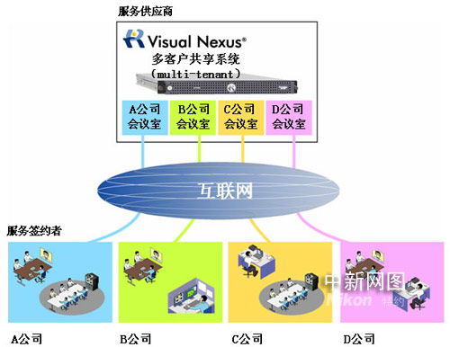 而且,包括SaaS的ASP服務(wù)需求也日益高漲,以提供視頻會議的ASP服務(wù)的服務(wù)供應(yīng)商為對象,采用了多家企業(yè)(客戶)能共享視頻會議系統(tǒng)的同時,又能單獨給個別企業(yè)提供服務(wù)的多客戶共享(multi-tenant)功能。從而實現(xiàn)系統(tǒng)運(yùn)用效率最大化,降低管理運(yùn)用成本。