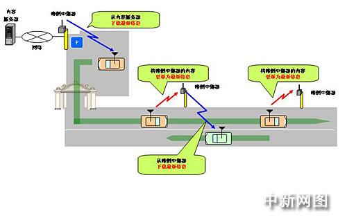 路側(cè)中繼器無(wú)需通過(guò)有線網(wǎng)絡(luò)與信息發(fā)送中心相連,路側(cè)中繼器的內(nèi)容可以根據(jù)車輛傳輸?shù)男畔⑦M(jìn)行最新信息更新。因此,無(wú)須敷設(shè)有線網(wǎng)絡(luò)所需的大筆費(fèi)用,只需設(shè)置具有DSRC車輛間通信裝置的路側(cè)中繼器的系統(tǒng),因此期待著減輕基礎(chǔ)設(shè)施構(gòu)筑費(fèi)用。