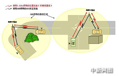 使用5.8GHz頻帶的DSRC車輛間通信功能交換位置信息。另一方面,今后,發(fā)送來(lái)自路側(cè)中繼器的GPS修正信息可以使用能被應(yīng)用于ITS的UHF頻帶。