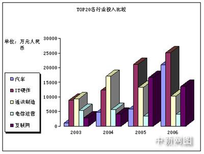 現(xiàn)在的情況是怎么樣呢?整個(gè)中國市場的網(wǎng)絡(luò)廣告投放額在增加,但以前那種一家獨(dú)大的情況不見了。更多的企業(yè)主體參與進(jìn)來了。從下面的網(wǎng)絡(luò)廣告TOP20各行業(yè)投入比較表中可以看到,在2006年,汽車已經(jīng)超越了互聯(lián)網(wǎng)企業(yè),成為對(duì)網(wǎng)絡(luò)廣告貢獻(xiàn)比例最大的行業(yè)之一,僅僅次于IT硬件產(chǎn)業(yè)。