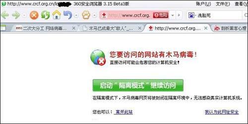 紅十字基金會官網(wǎng)服務(wù)器被放置了木馬,遭360安全瀏覽器攔截