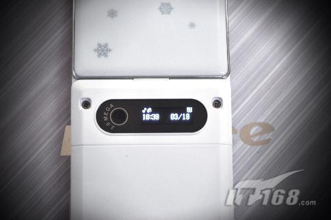 在koobee K75的后蓋上部,有一個小小的液晶屏幕,顯示效果優(yōu)良,可以讓你不用翻蓋就一目了然地知道是誰的來電,非常體貼的設計。