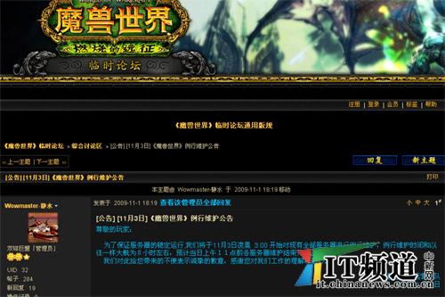 昨晚,記者在《魔獸世界》中文官網(wǎng)臨時論壇發(fā)現(xiàn),網(wǎng)易已于1號晚上發(fā)布《魔獸世界》例行維護(hù)公告,公告稱,為了保證服務(wù)器的穩(wěn)定運行,將于11月3日凌晨 3:00 開始對現(xiàn)有全部服務(wù)器進(jìn)行例行維護(hù),停機(jī)時間預(yù)計為12小時左右。同時“客服電話服務(wù)”也將暫停12小時。 這比《魔獸世界》之前的例行停機(jī)維護(hù)時間稍長。