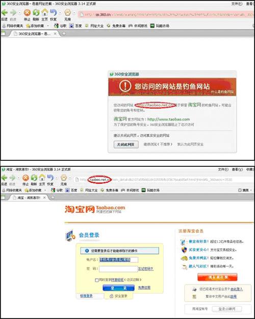 360安全瀏覽器攔截模仿知名網(wǎng)站的釣魚網(wǎng)頁